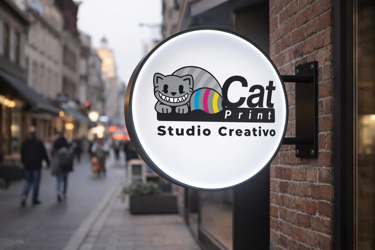 Su formato circular tipo banderola permite ser instalado perpendicular al muro, siendo visible desde ambos sentidos de la calle, lo que lo convierte en una excelente herramienta de publicidad exterior.