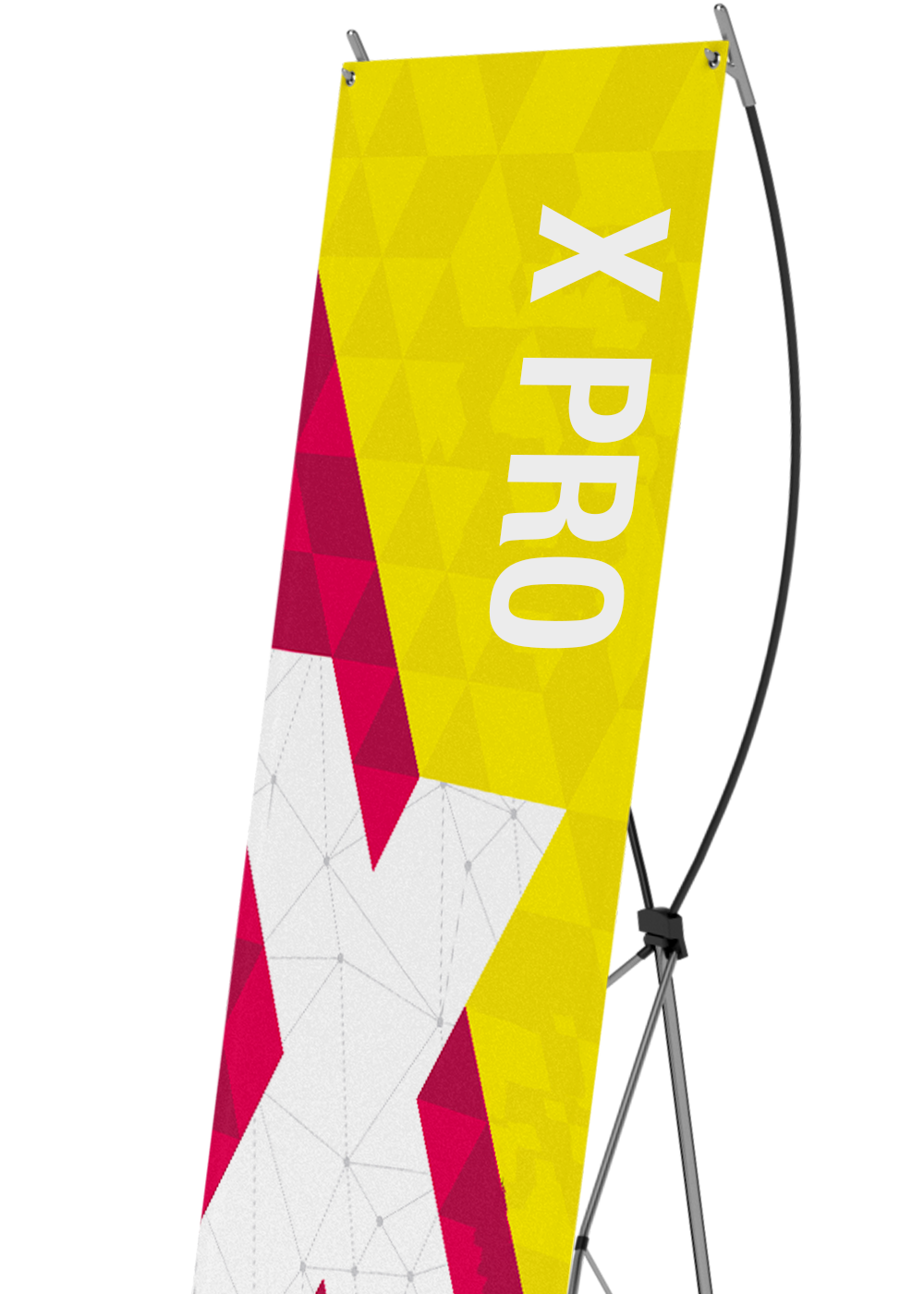 Pendón X-Pro 60 × 160 cm impreso en tela PVC de alta calidad, ideal para publicidad, ferias, eventos y puntos de venta. Liviano, resistente y fácil de armar, con impresión nítida y colores intensos para una excelente visibilidad.