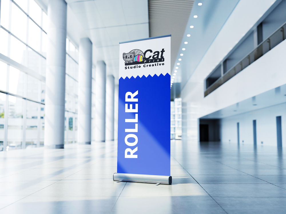 Pendón Roller publicitario de alta calidad, fácil de transportar y montar, ideal para ferias, eventos, puntos de venta y promociones. Impreso en alta resolución para una excelente presencia visual.
